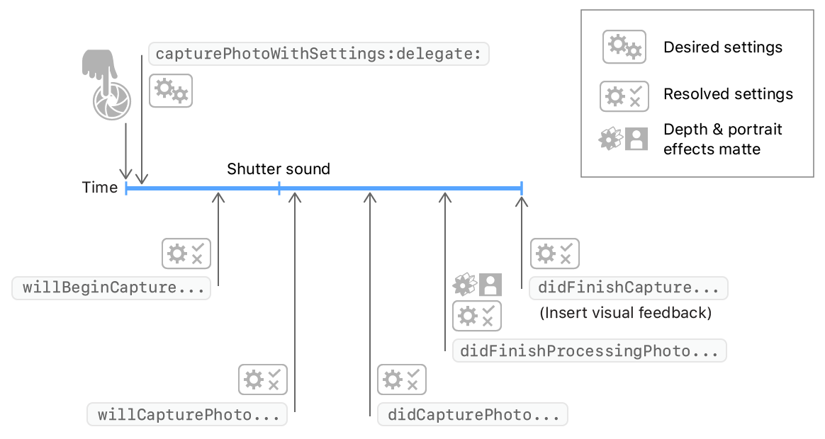 photoOutput(_:willCapturePhotoFor:)은 시스템이 셔터 사운드를 재생한 후 바로 도착합니다.