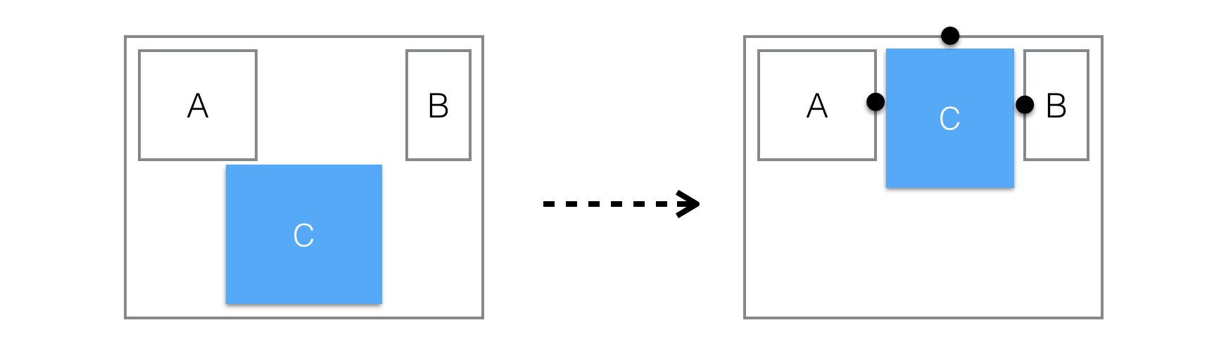A와 B 사이에 10픽셀 거리두기