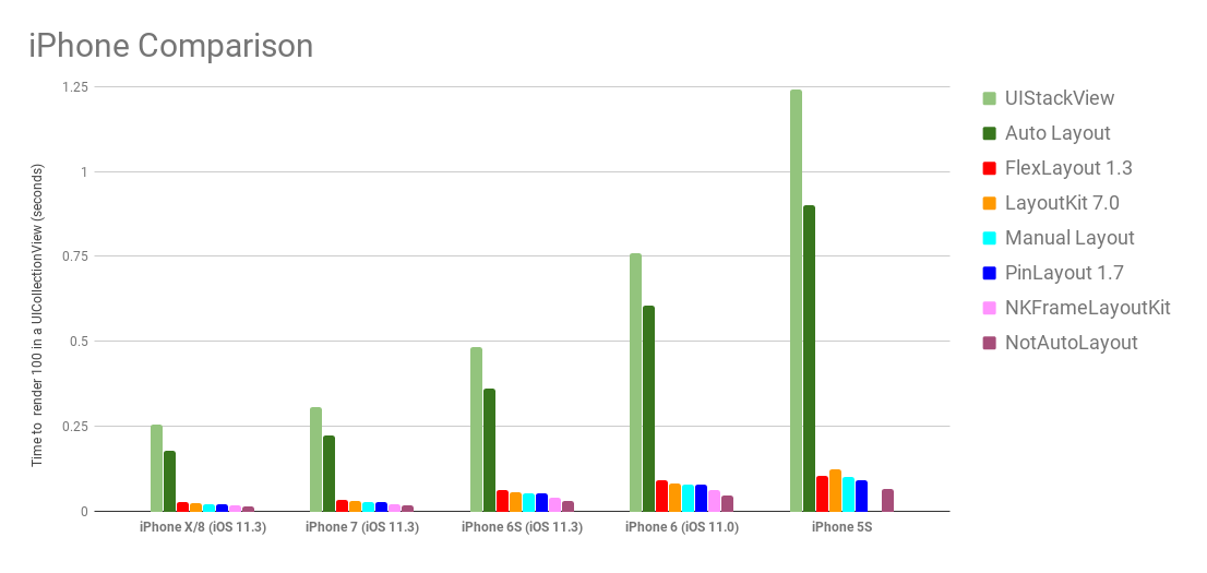 모든 종류의 아이폰에서 매뉴얼 레이아웃과 비슷한 정도의 속도, 오토레이아웃보다 8~12배 빠름