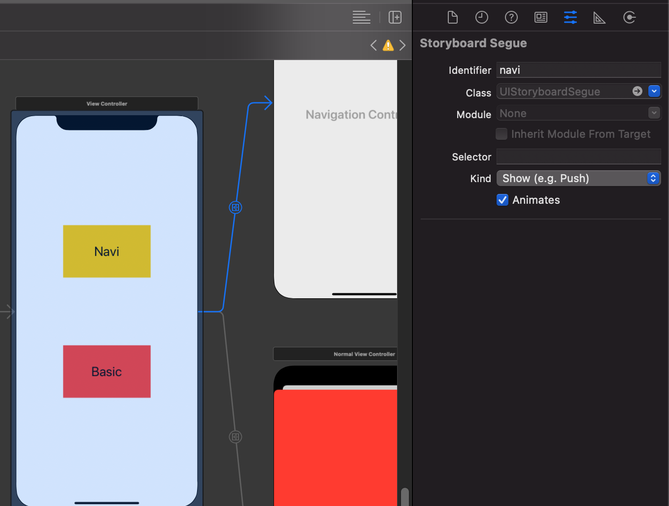 앞에서 설정한 segue는 첫번째 ViewController에서 NavigationController로 가게되어있습니다.