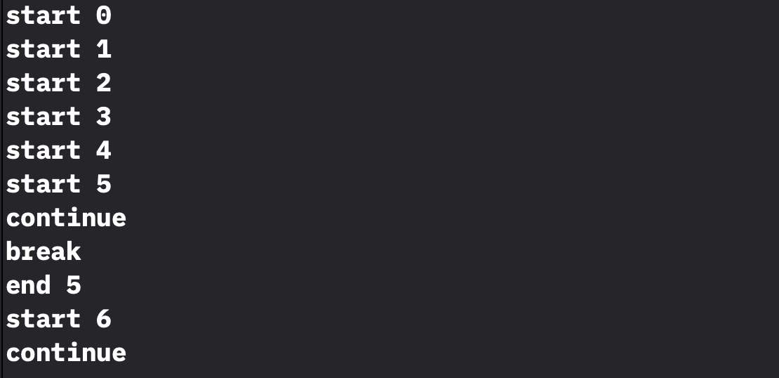 continue 는 반복문을 종료하지 않고 다음 케이스로 넘어가고