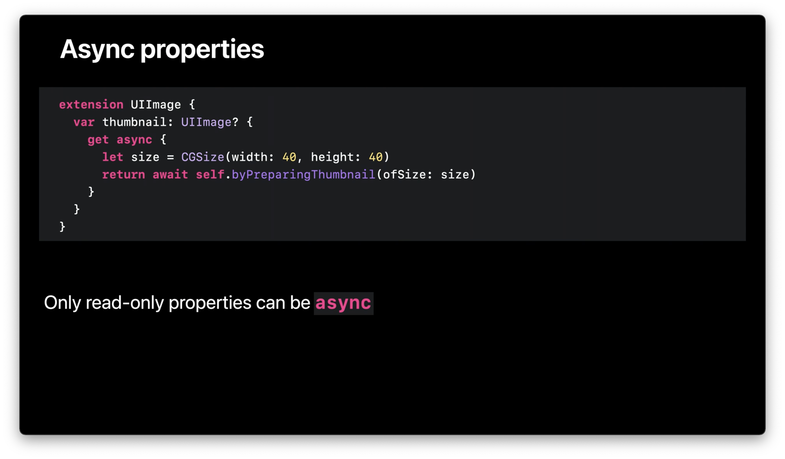 function만 async한게 아니라 프로퍼티도 async 하고 이니셜라이저도 async할 수 있습니다.