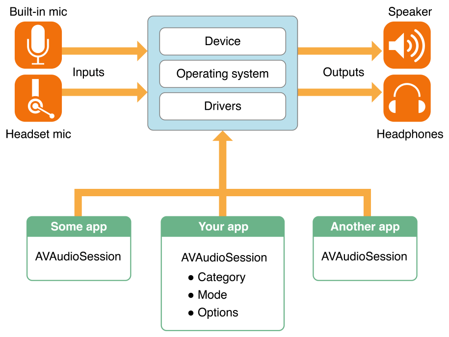 Introduction Audio is a managed service in iOS, tvOS, and watchOS. The system manages audio behavior at the app, inter-app, and device levels through the use of audio sessions. You use an audio session to communicate to the system how you intend to use aud