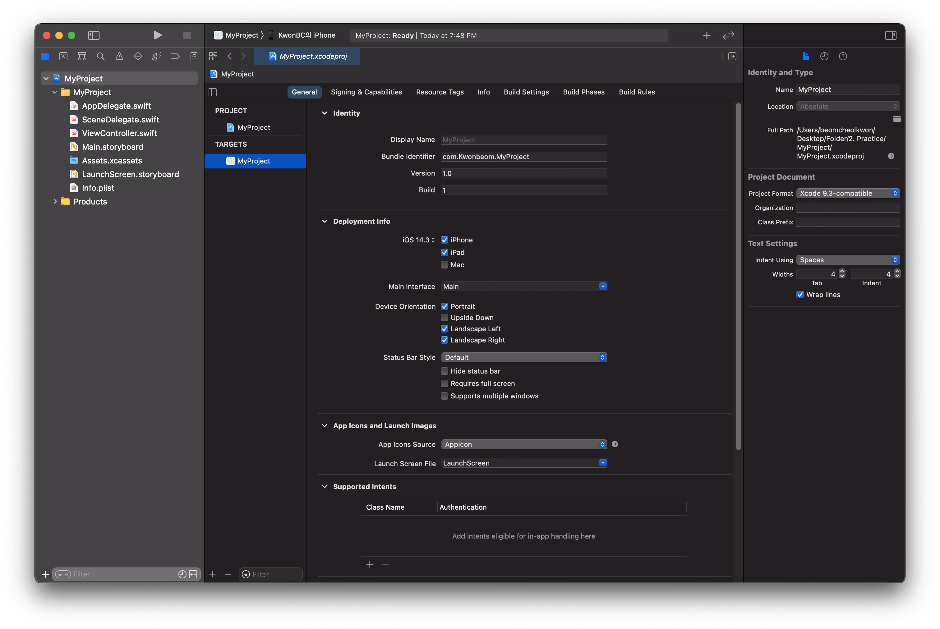 Xcode project file이 포함하는 정보