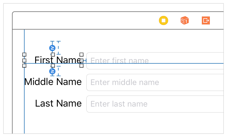 Orange Lines. 주황선은 현재 뷰의 상태와 제약이 일치하지 않을때 나타납니다. Resolve Auto Layout Issues tool > Update Frames command를 사용해서 뷰를 업데이트 할 수 있습니다.