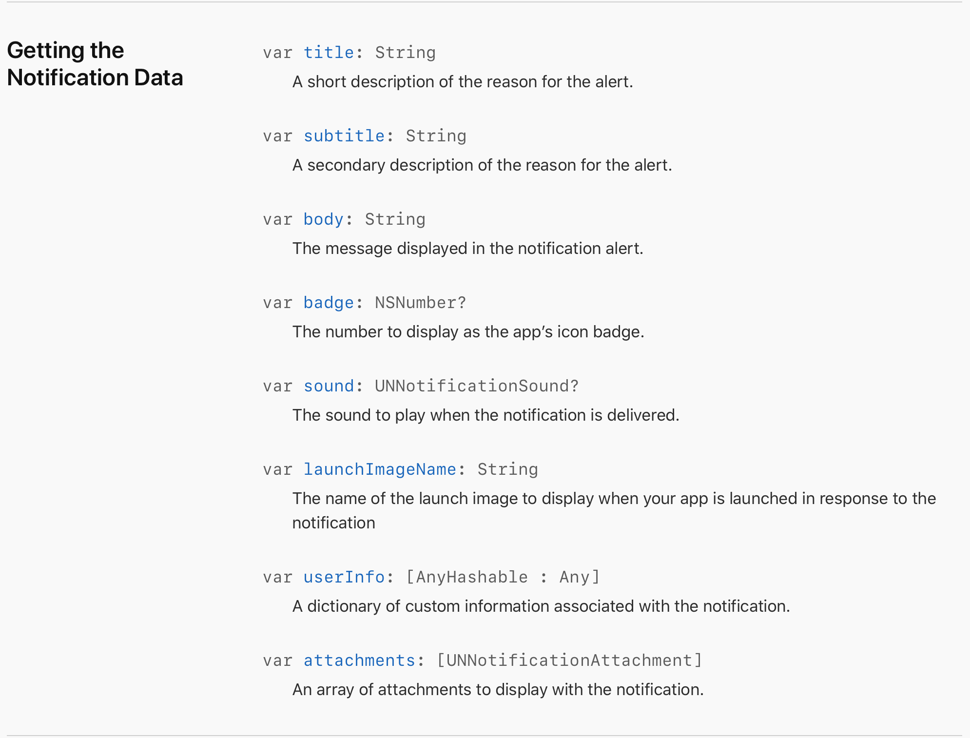 UNNotificationContent에서는 알림 내용을 설정할 수 있습니다.