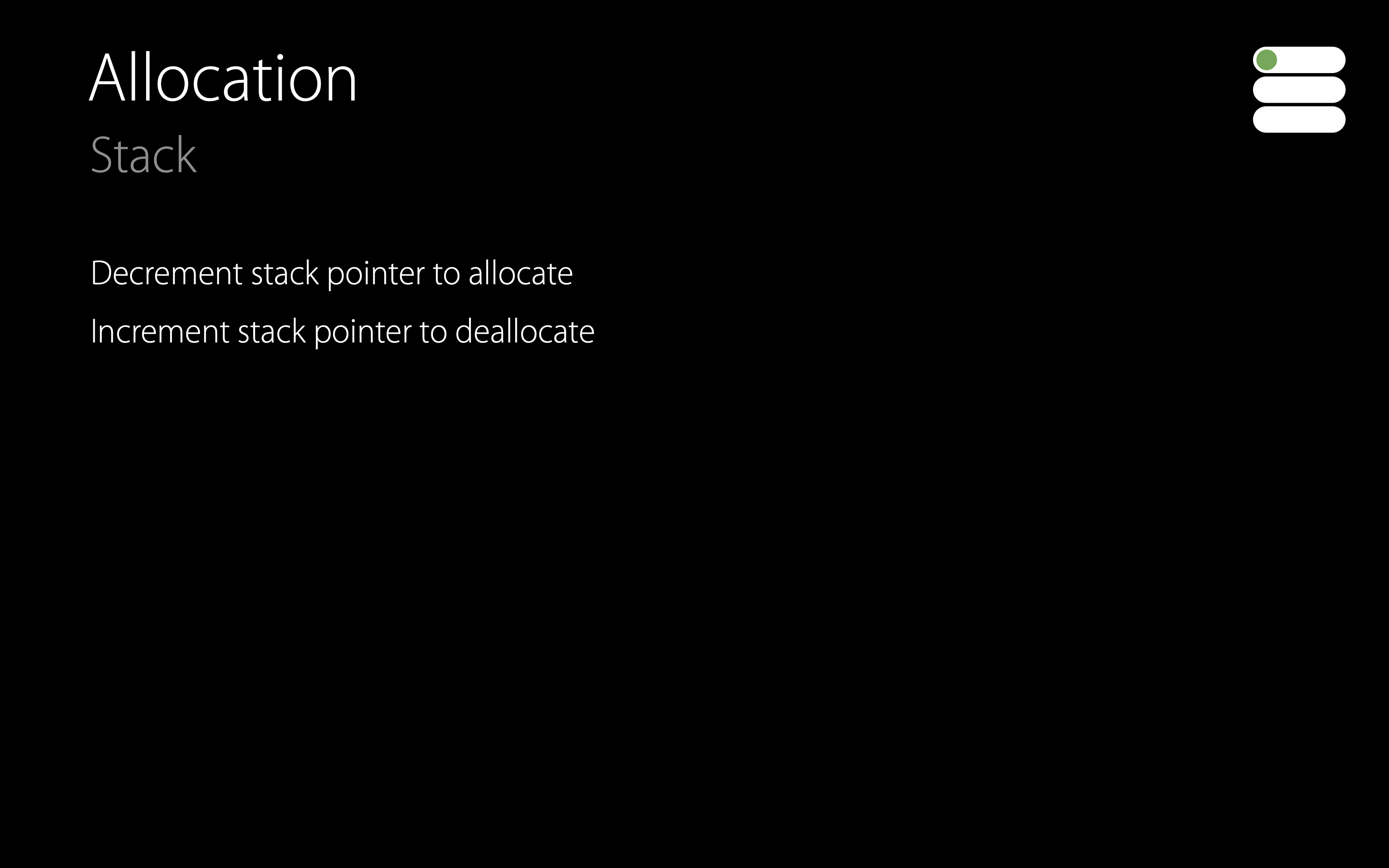 함수가 종료될 때, 스택 포인터를 포인터를 다시 증가시키면 메모리를 해제할 수 있습니다.