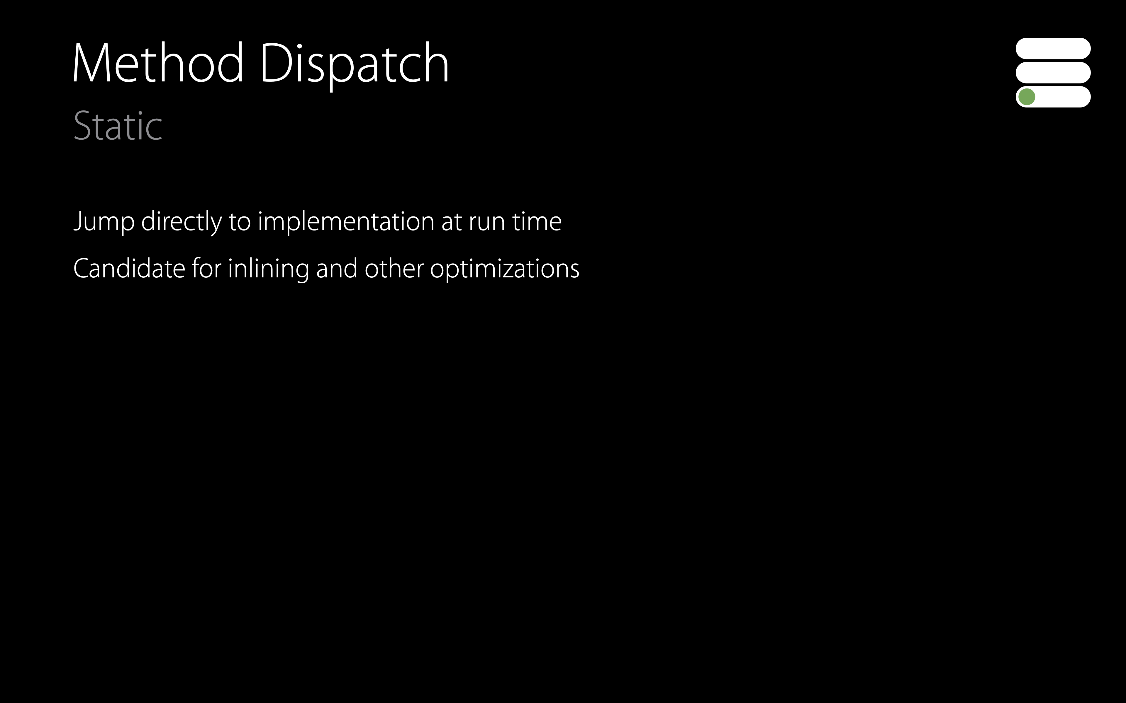 컴파일 시 실행할 구현을 결정할 수 있는 경우 static dispatch라고 합니다.